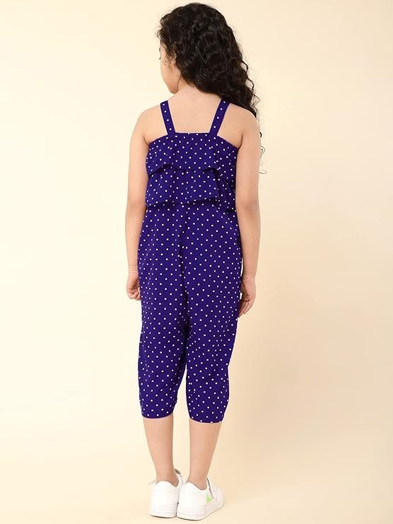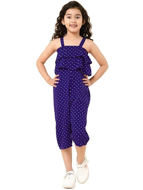 A.T.U.N. Polka Dot Ruffle Jumpsuit features a cute capri length and fun frills, giving girls a standout look for casual outings or holidays.