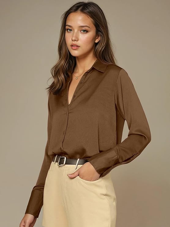 Style & Occasion: A satin button-up shirt with a drop shoulder design — giving it a relaxed yet elegant silhouette suitable for officewear, casual outings, and formal occasions.