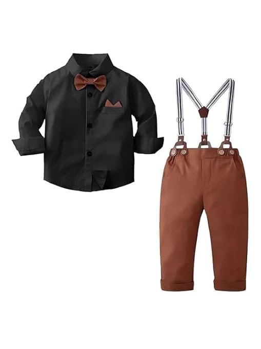 THE VIBES BOOK Baby Formal Set with suspenders gives little ones a dapper look with a bowtie and trousers, ideal for parties and special occasions.
