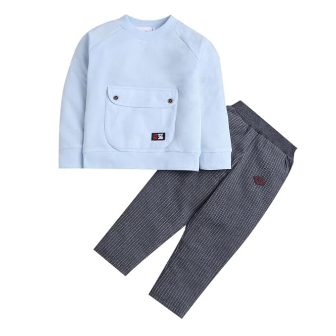 Hopscotch Boys Solid Blue Set includes a soft cotton top and pants combo that?s stylish and functional, perfect for casual wear and small gatherings.