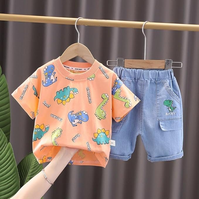Indhrani’s baby boy t-shirt and shorts set combines cheerful prints with breathable fabric, offering cute and comfy wear for daytime play or nap time.