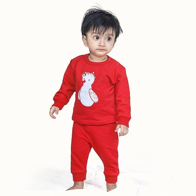 Real Basics Cotton Fleece Tracksuit keeps kids cozy in full sleeves and soft texture, offering warmth and movement freedom for both boys and girls in chillier seasons.