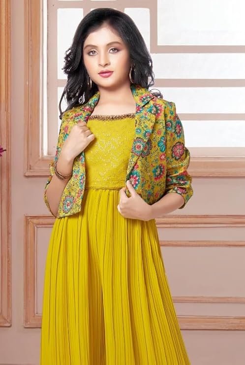 White Button Lemon Sequin Jacket Palazzo Set is a stylish indo-western fusion outfit perfect for weddings, functions, and ethnic celebrations.
